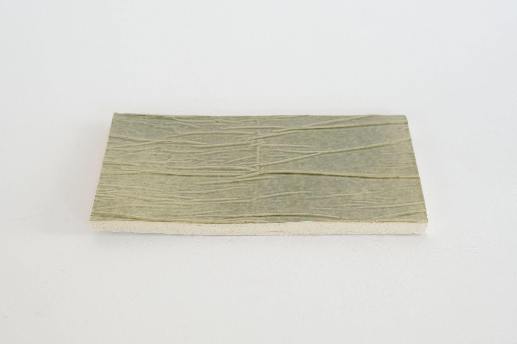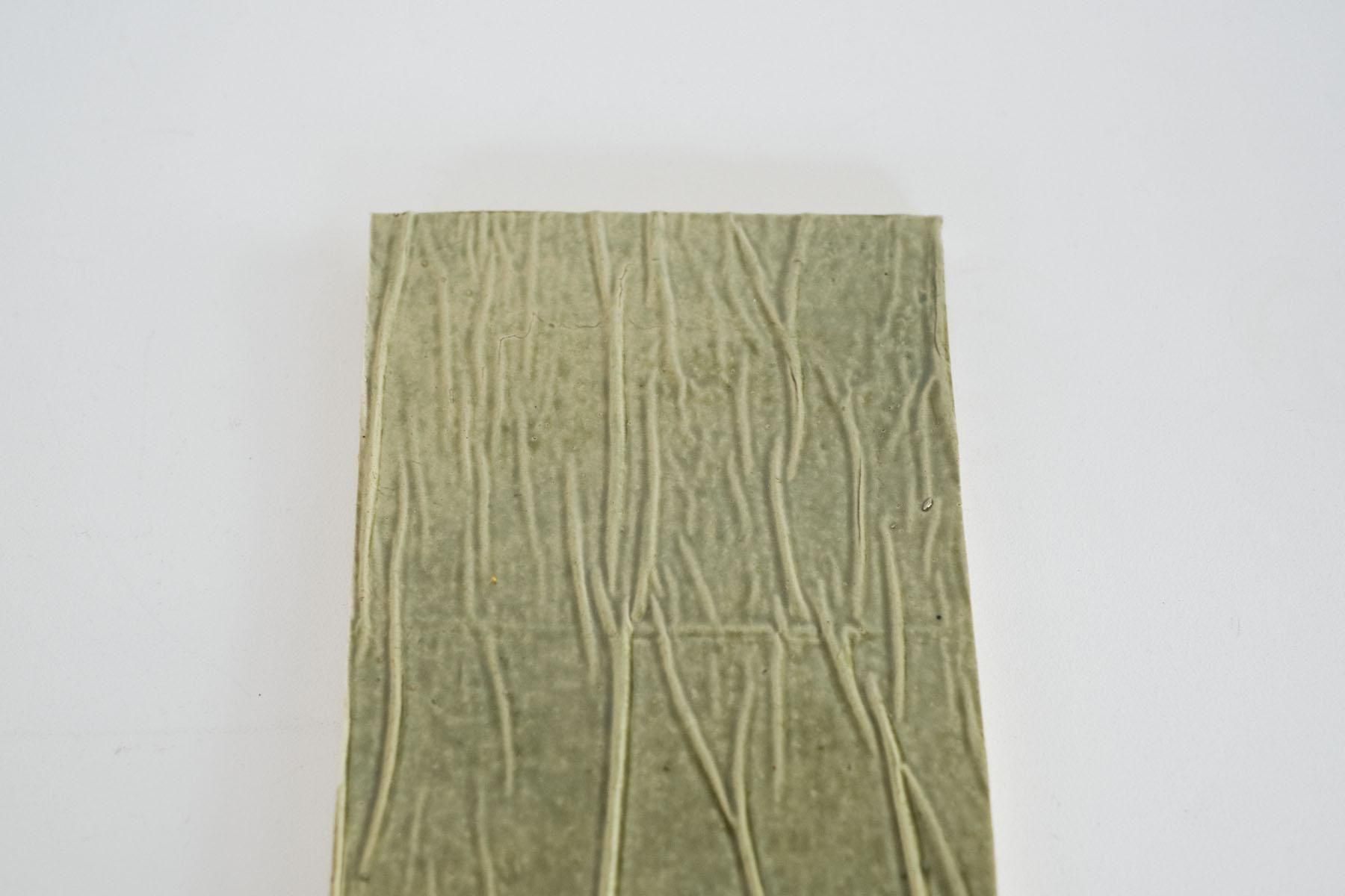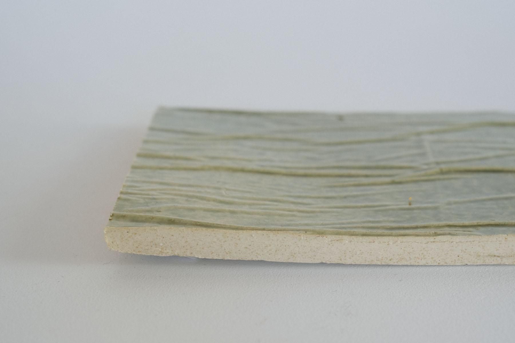 紙を押し当てて作られた立体的な模様がついたプレートです。