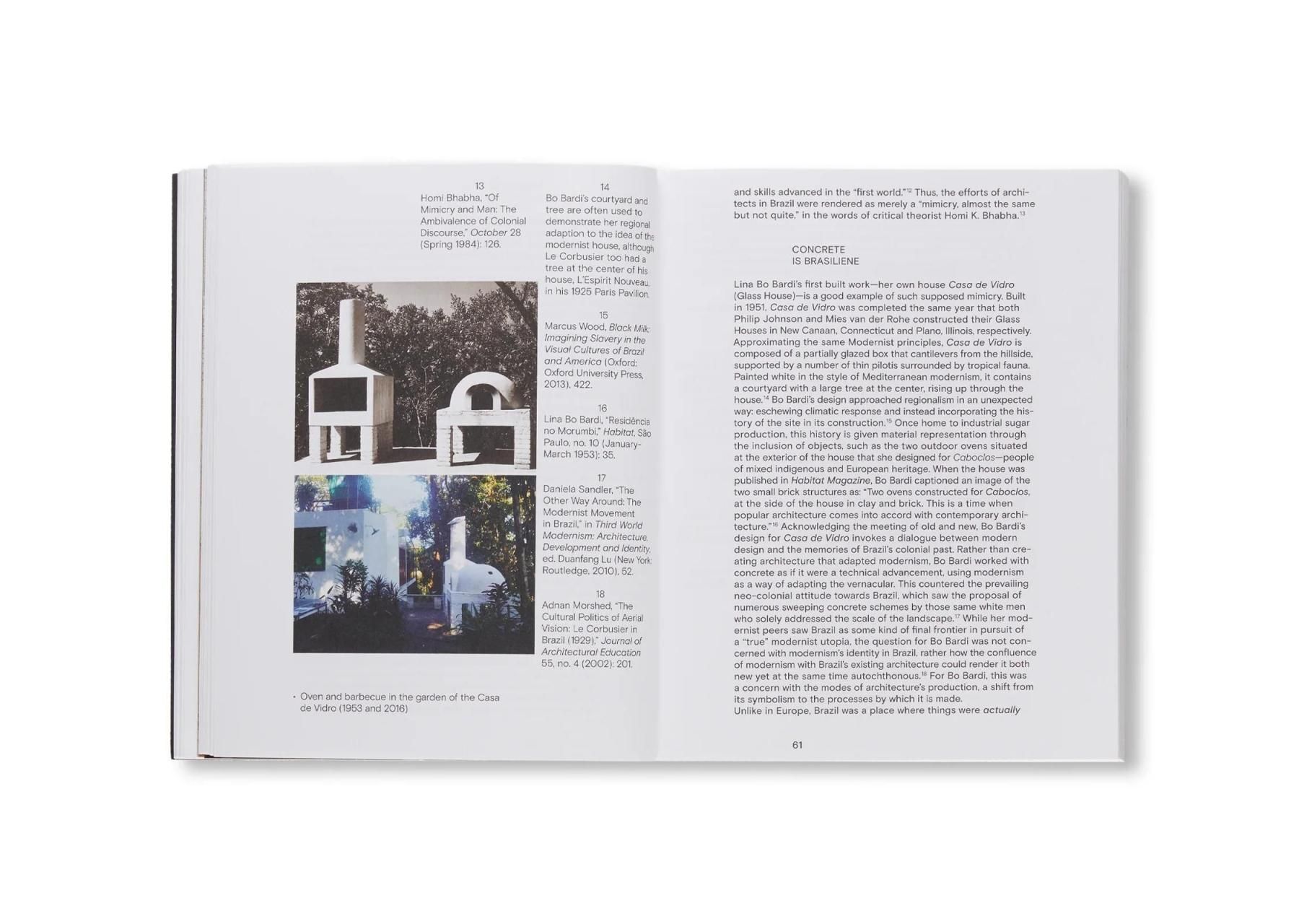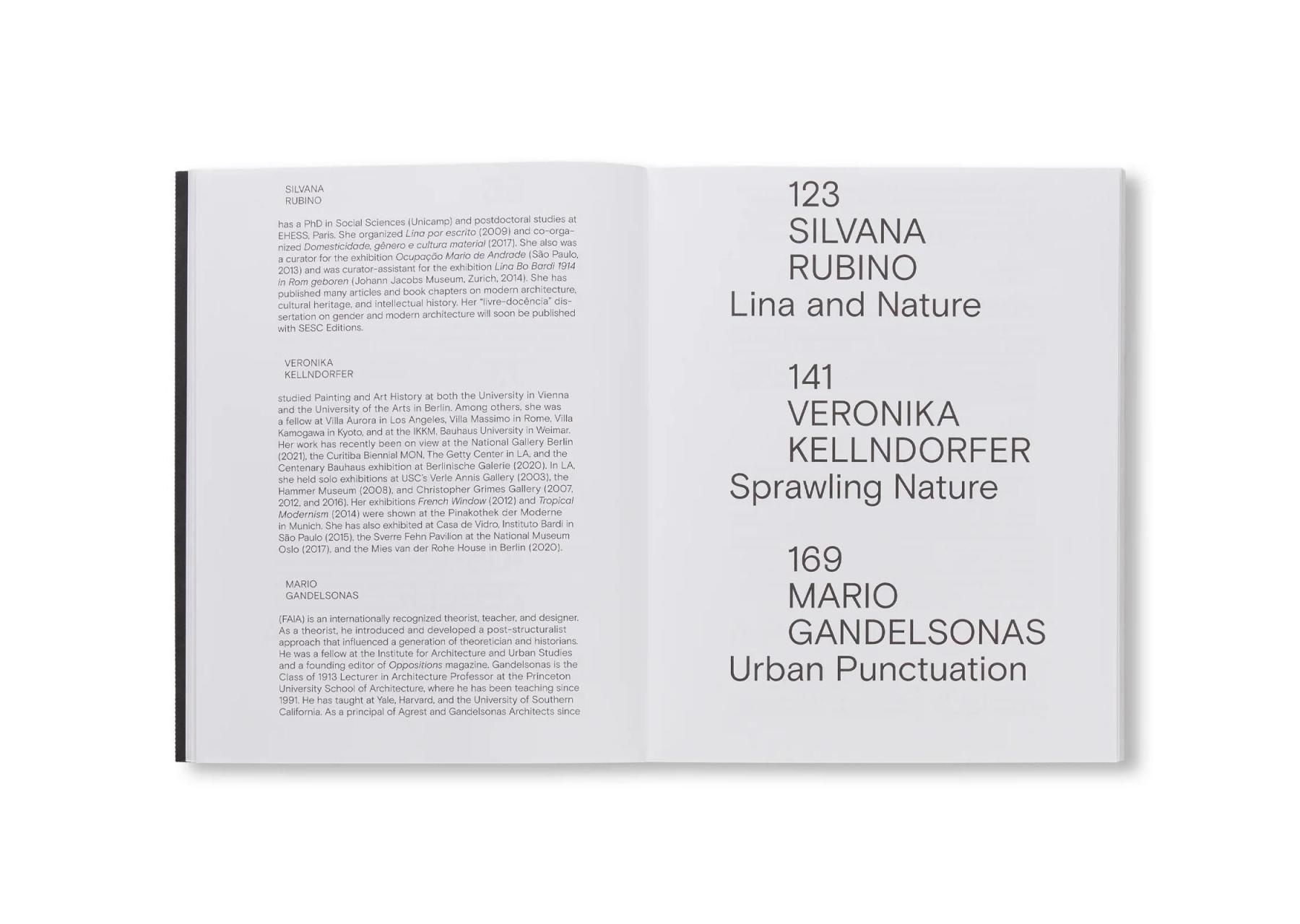 ブラジルの歴史において最も重要な建築家の一人であるイタリア人建築家、リナ・ボ・バルディ(Lina Bo Bardi)の作品集。作者は、「サンパウロ美術館(São Paulo Museum of Art)」や文化センター「セスキ・ポンペイア(SESC Pompéia)」など、大胆なモダニズム建築で有名な建築家である。アーティスト、建築家、デザイナー、作家、社会活動家として活動していた作者は、地元の工芸や素材を積極的に紹介した。作者による民主的なデザインは、インクルーシブであり、エリート主義的な組織から排除された人々にも門戸を開き、ブラジル内外のモダニズム運動の中で際立った美学を体現していた。このエッセイ集では、第一線で活躍する現代アーティスト、建築家、キュレーター、研究者が、作者について新たな視点を提示する。コンクリートや自然の活用法から土地特有の素材の再利まで、作者が選んだ建築素材に潜む概念的、社会的、政治的な哲学を、寄稿者たちが取り上げている。