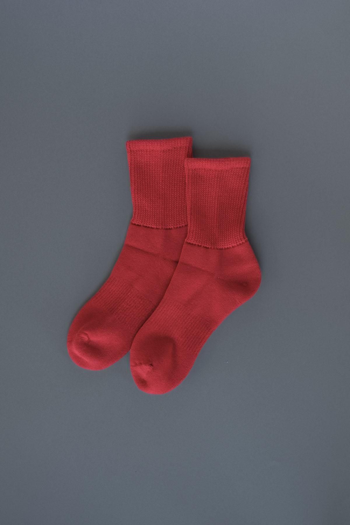 オーガニックコットン100%の糸で編みあげた靴下。内側は足底から甲部分にかけて全面パイル編みでふんわりと柔らかな履き心地です。程よく厚みがあり、締めつけずにやさしくフィットしてくれます。