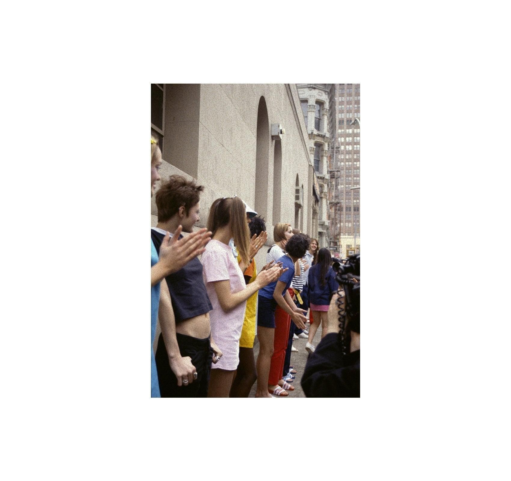 ショーは数ブロック離れたマーサー・ストリートの歩道を少し高くした場所で行われた。「マーク・ジェイコブス(Marc Jacobs)」による最新コレクションのショーを終えて、リンダ・エヴァンジェリスタ(Linda Evangelista)、カイル・マクラクラン(Kyle MacLachlan)、ビル・カニンガム(Bill Cunningham)、プレスなどが出てくるタイミングに合わせて始まった。私たちはとっても高まったし、目が眩むようだった。アンジェラの写真に写し出された高揚感は、滅多に起こらないようなことに参加できたことで生まれたものが合わさっている。私たちは許可も認可も受けないで『ファッション』のルールも街のルールも破り、そしてお尻をカッチコチに凍らせたの。」