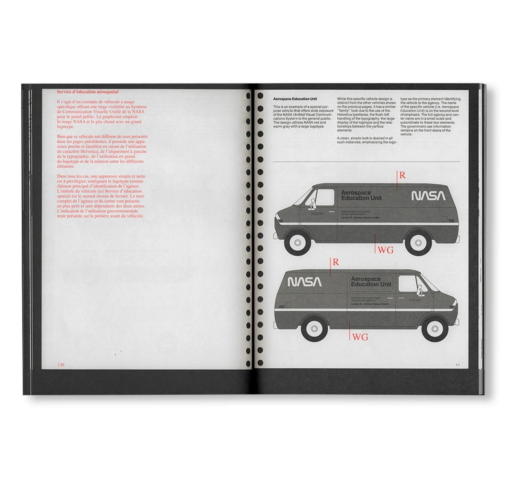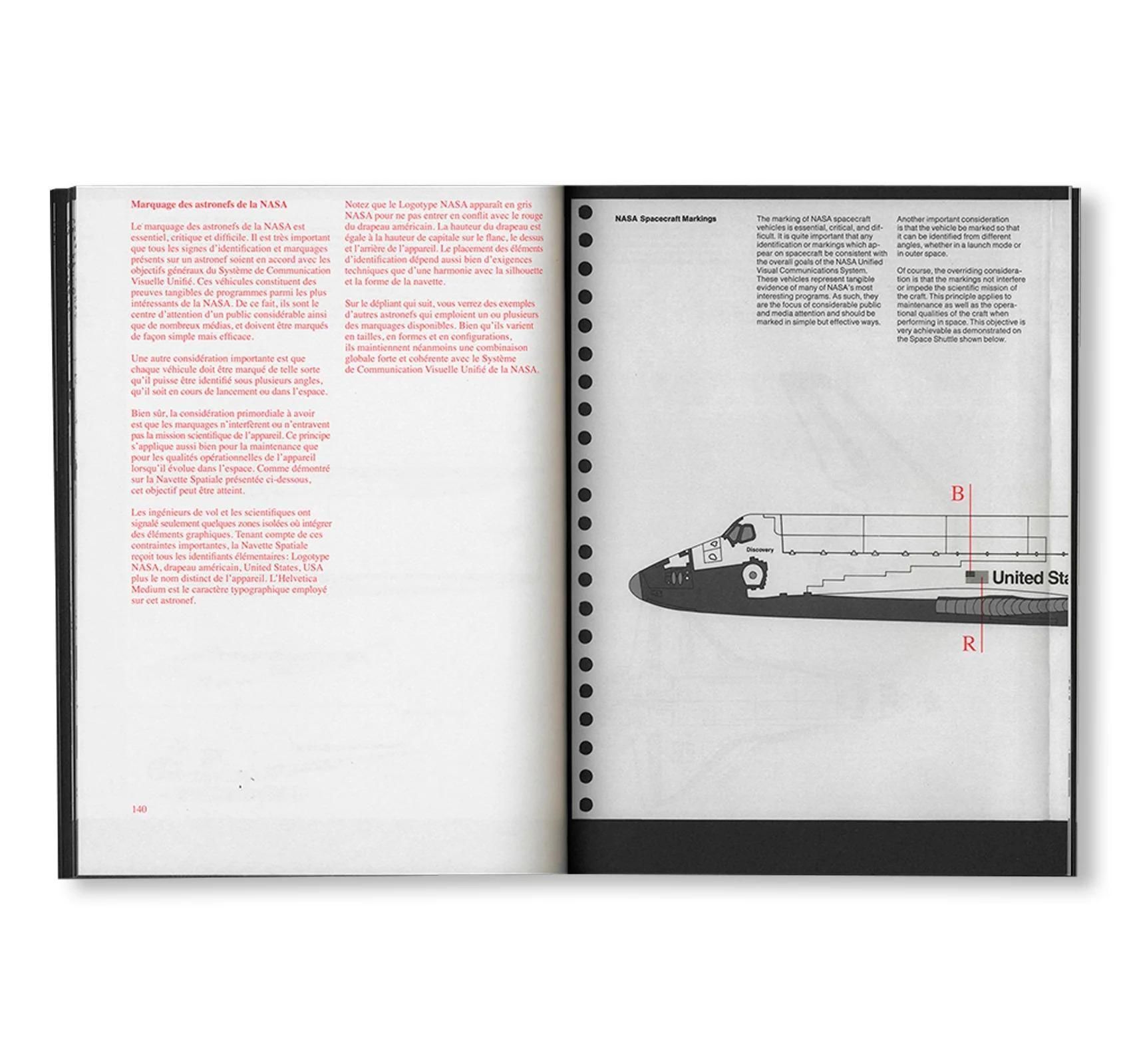 本書は「ナサ」への率直な興味の範疇を超えて、興味深い幾つもの点が挙げられる。レターヘッドからスペースシャトル「ディスカバリー号(Discovery)」のマーキングに至るまで、本書は「ナサ」のビジュアル・アイデンティティを包括的に示している。それゆえに読者は、使用に関する形式的・政治的・技術的な部分において様々に異なるスケールを把握できる。新たに「ナサ」で文書を作る者を導く本書の明快な文書は、今日のコミュニケーション分野におけるメインストリームの語彙と明確に対称を成す。本書は、本という物質として、これまでに集めた関心に見合う価値を持つ一冊であり、いかにして提示するか、そこに込められた意欲と配慮を遺憾無く披露している。そして、指示や提案の整理・理解・実行を確実成し遂げるための操作性の高さも持ちうるのである。