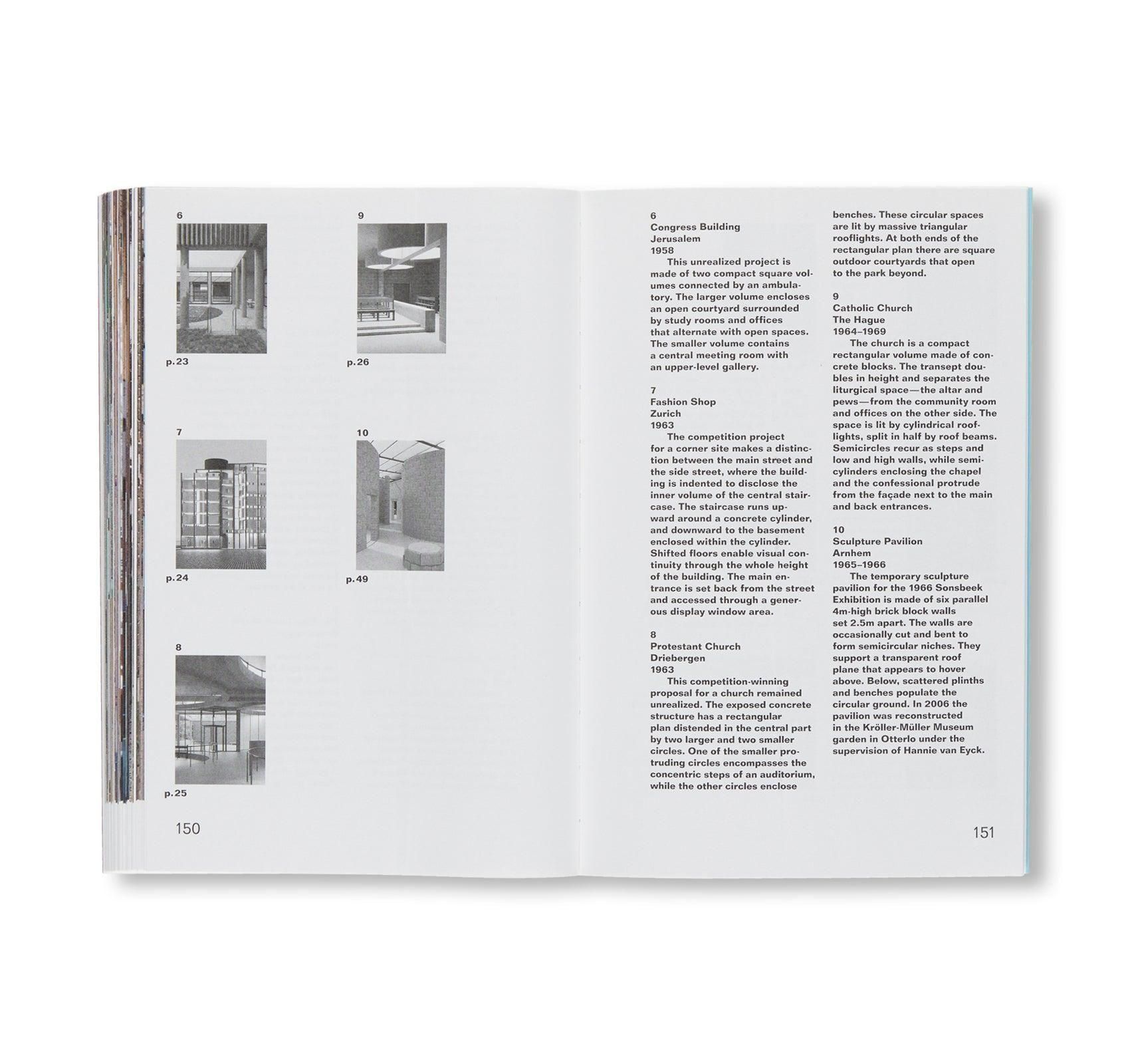 オランダ人建築家、アルド・ファン・アイク(Aldo van Eyck)とハニー・ファン・アイク(Hannie van Eyck)の作品集。アルドとハニーは建築学生時代に出会い、1942年に夫婦となった後、1970年代後半に数年間中断したもののほとんどのプロジェクトを共に密接に協力して手がけた。本書はベルギーのブリュッセルを拠点に活動する建築事務所、オフィス・ケルステン・ゲールス&ダヴィッド・ファン・セーヴェレン(OFFICE Kersten Geers David Van Severen)のケルステン・ゲールスが編集する「Everything」シリーズの一冊であり、「スイスイタリア語大学メンドリシオ建築アカデミー(Academy of Architecture USI, Mendriso)」の学生による現場/プラン/セクション/立面図のドローイングと、フォトグラファーであるバス・プリンセン(Bas Princen)による多岐にわたる写真を用い、2人が手がけた建築作品24点を紹介する。そこには世に知られていない後期の作品も含まれている。
