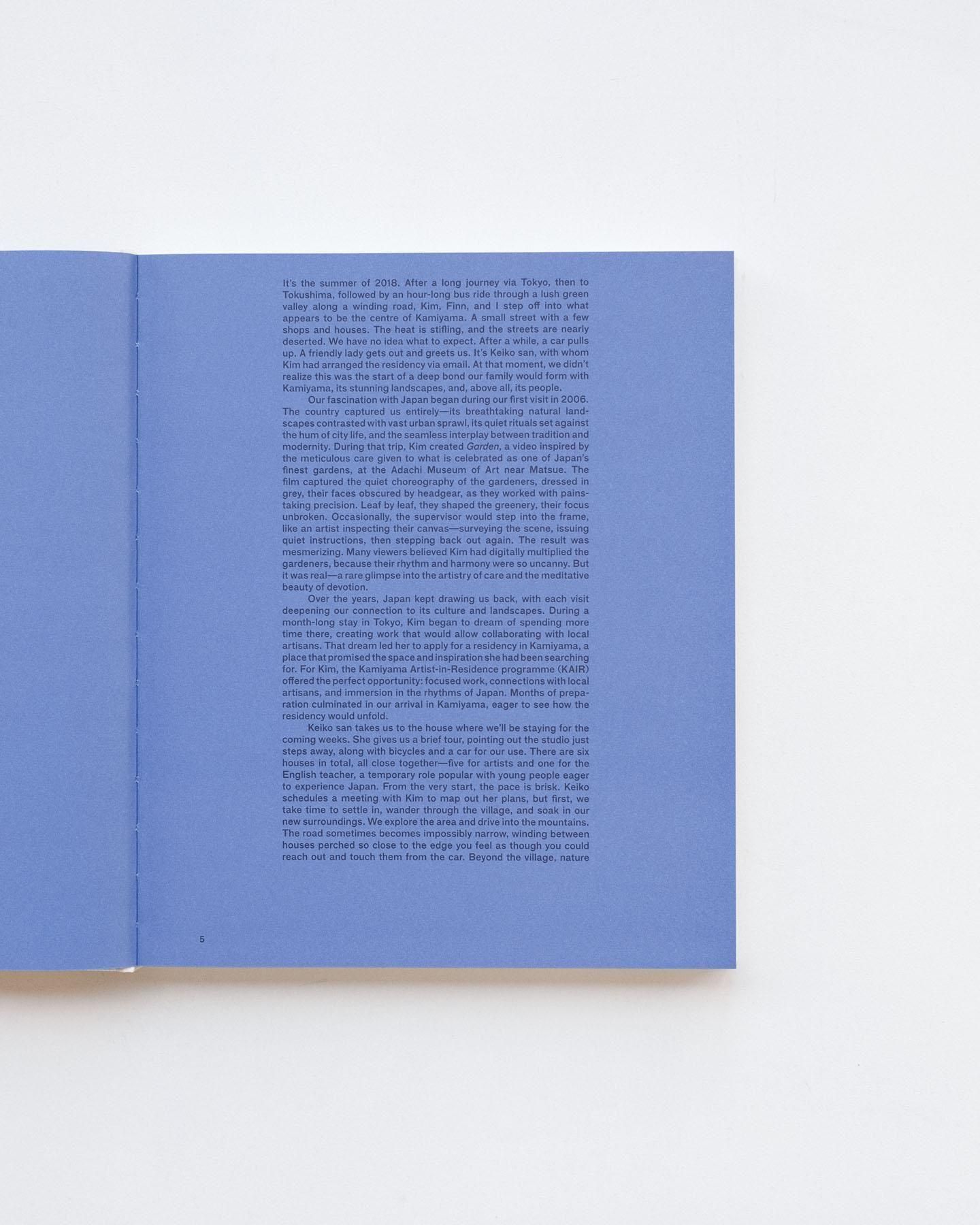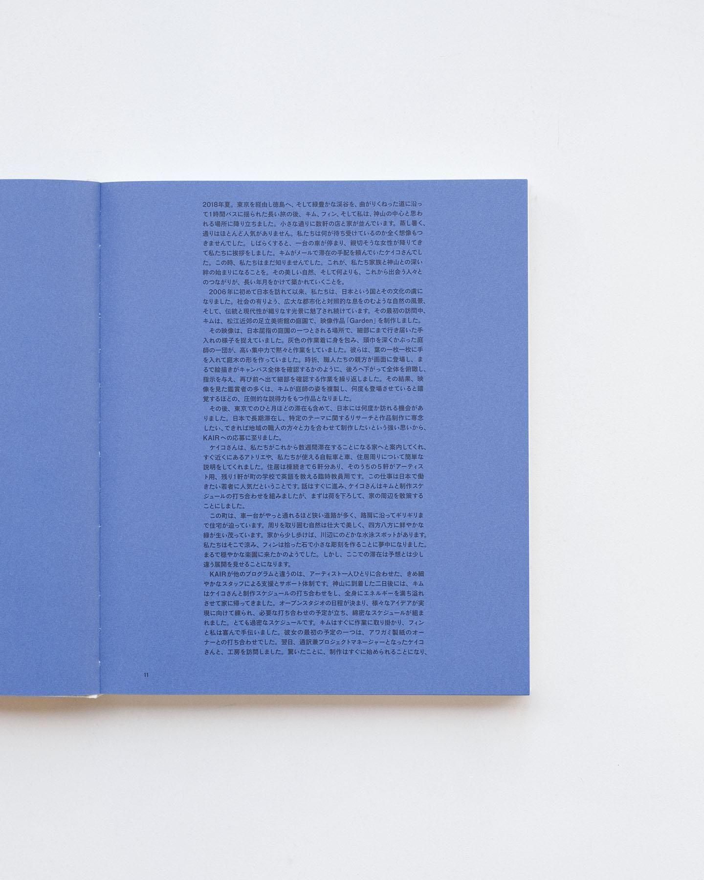 本書では、2018年から7年にわたって、彼女が徳島県の山間に位置する神山町を継続的に訪れ、神山アーティスト・イン・レジデンス(KAIR)に参加し制作した作品を紹介する。