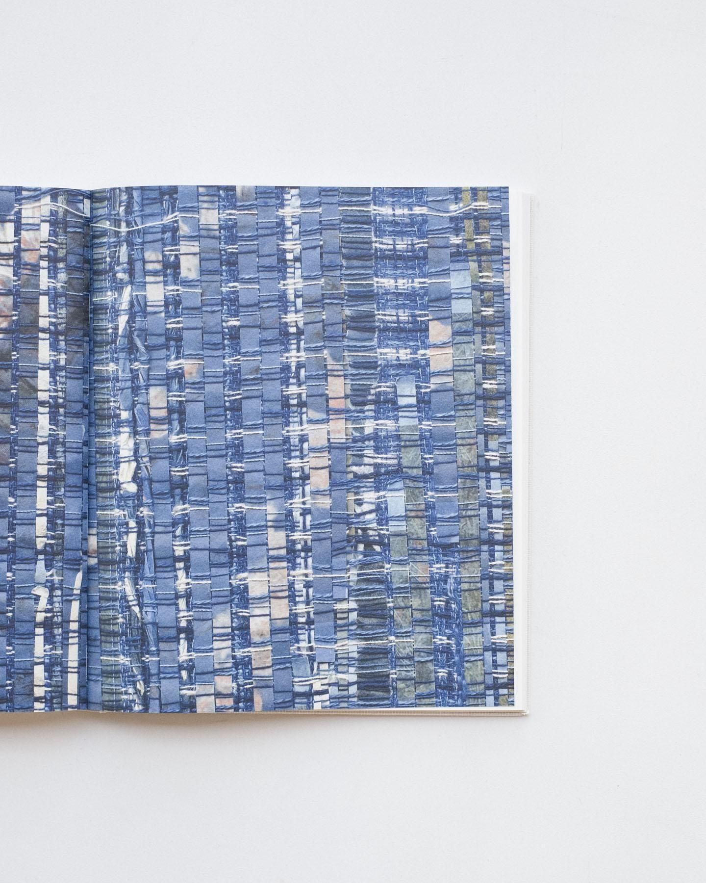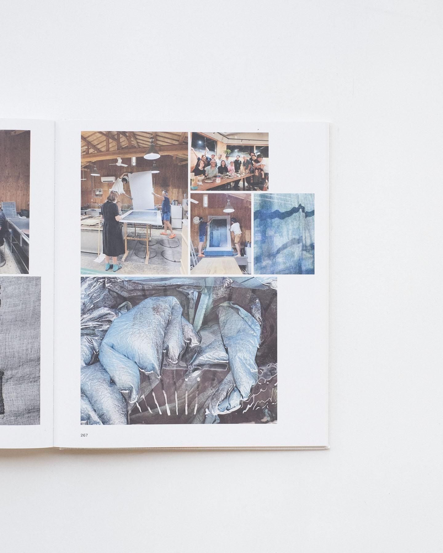 作品は、時間をかけてその土地と関係を築いていく、プロセスベースの制作姿勢を反映するもので、天然藍染や手漉き和紙といった地元の職人との協働を通じて、自然環境は主題であると同時に、作品の物質そのものとしても存在している。