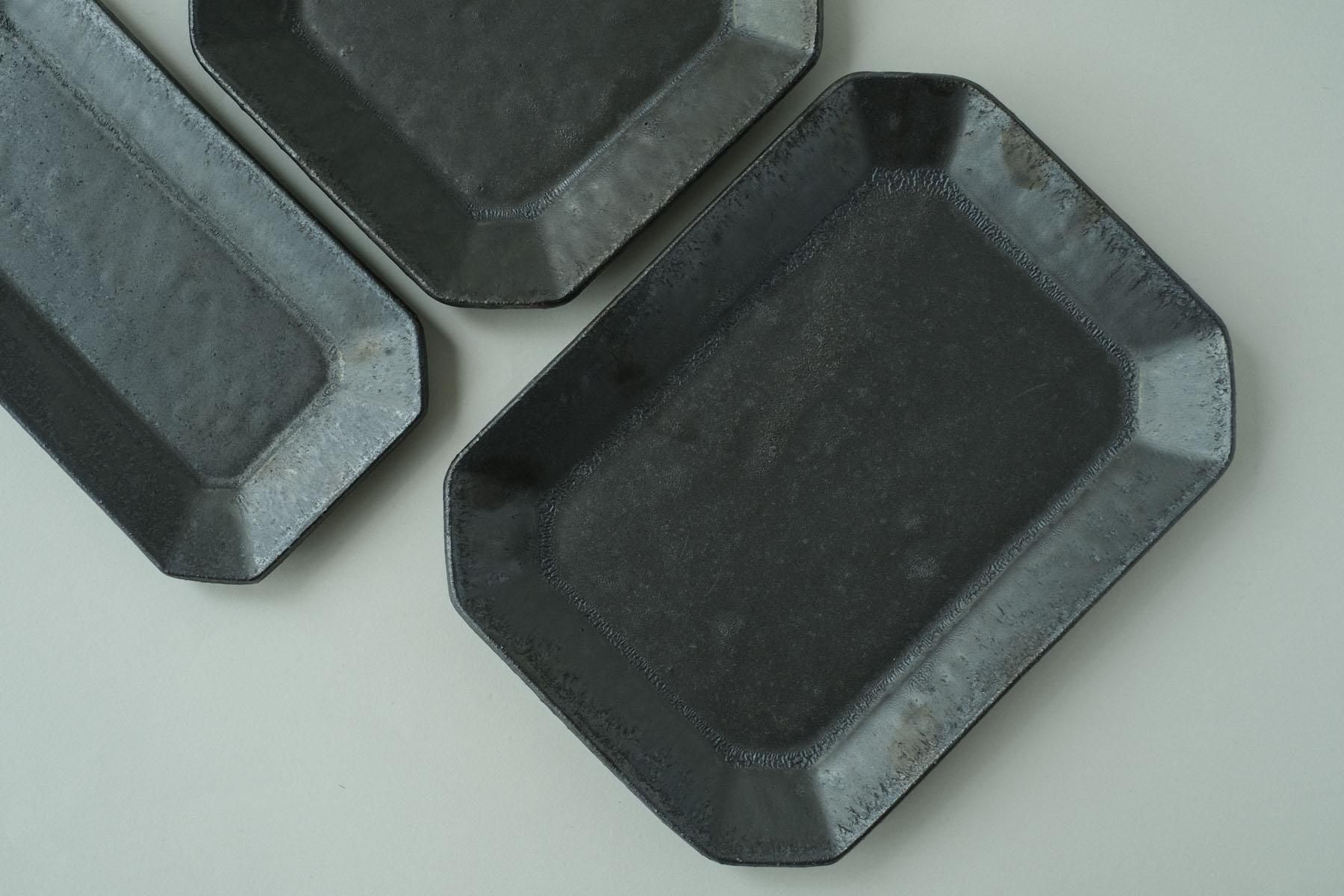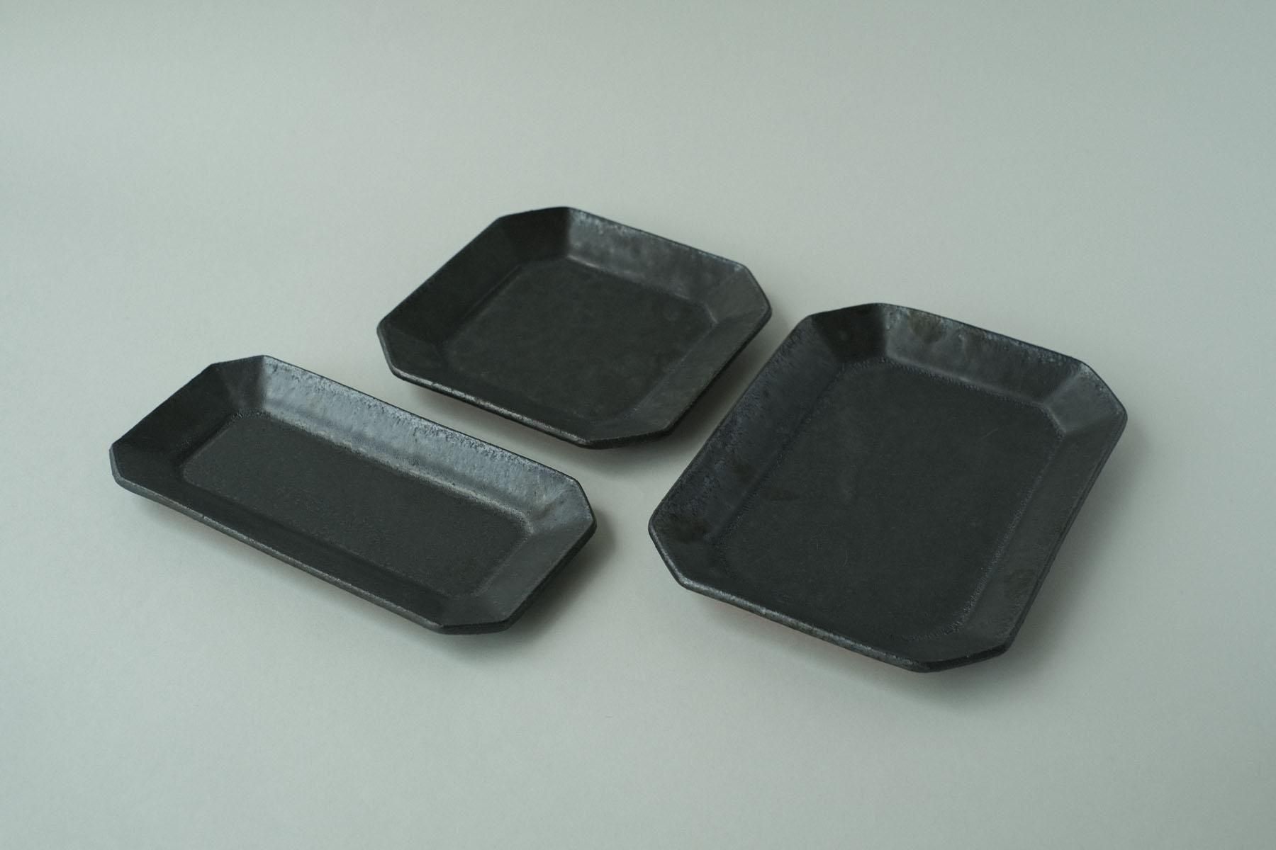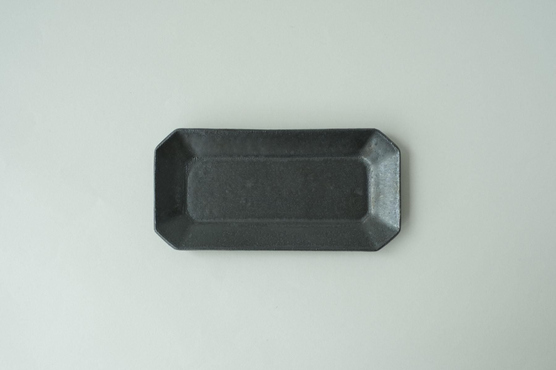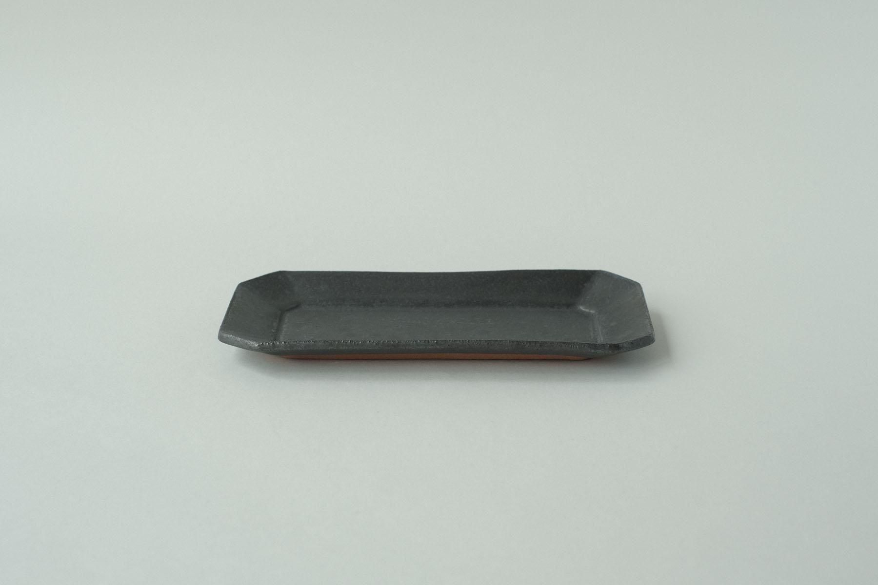 赤土マンガンの細角皿です。