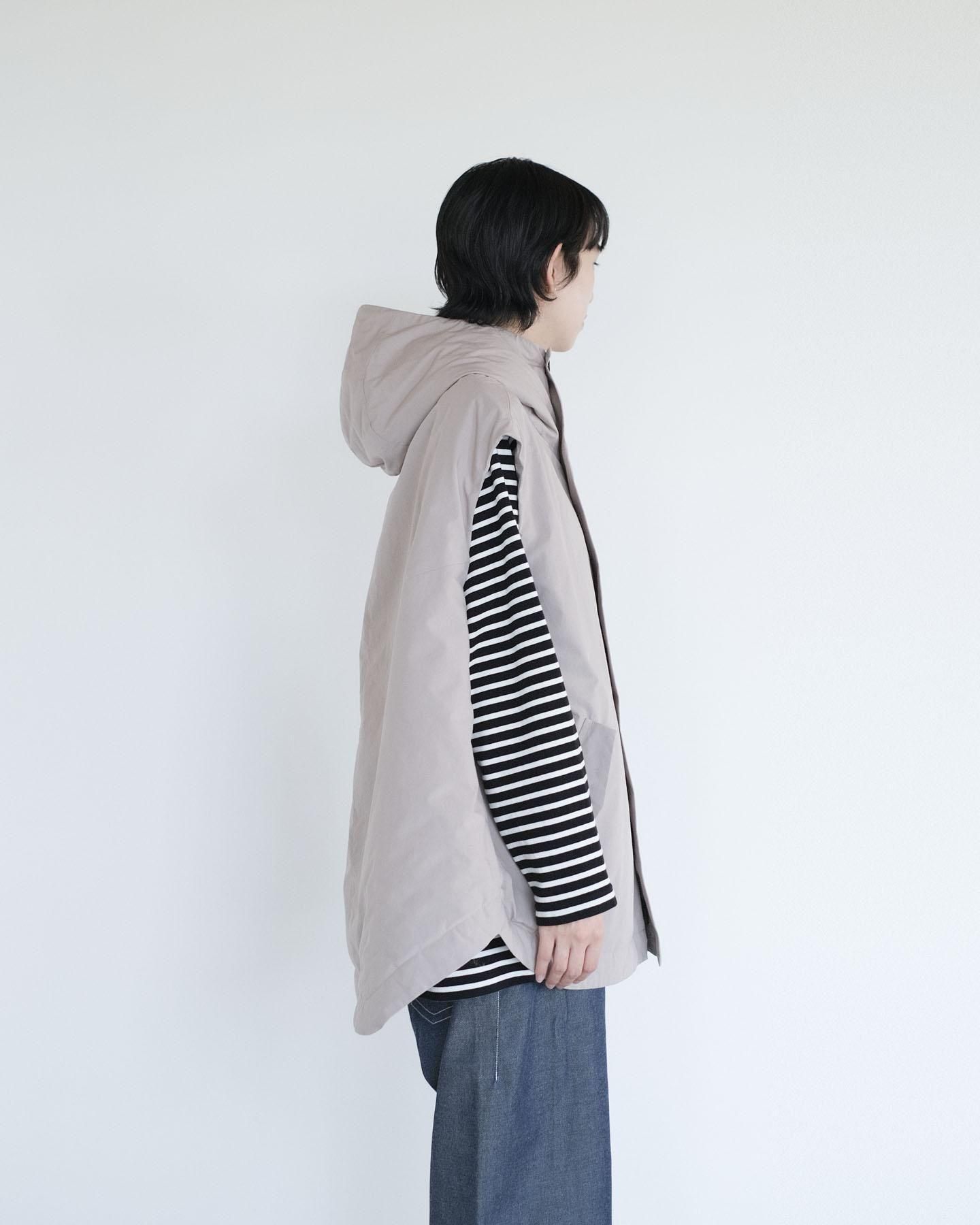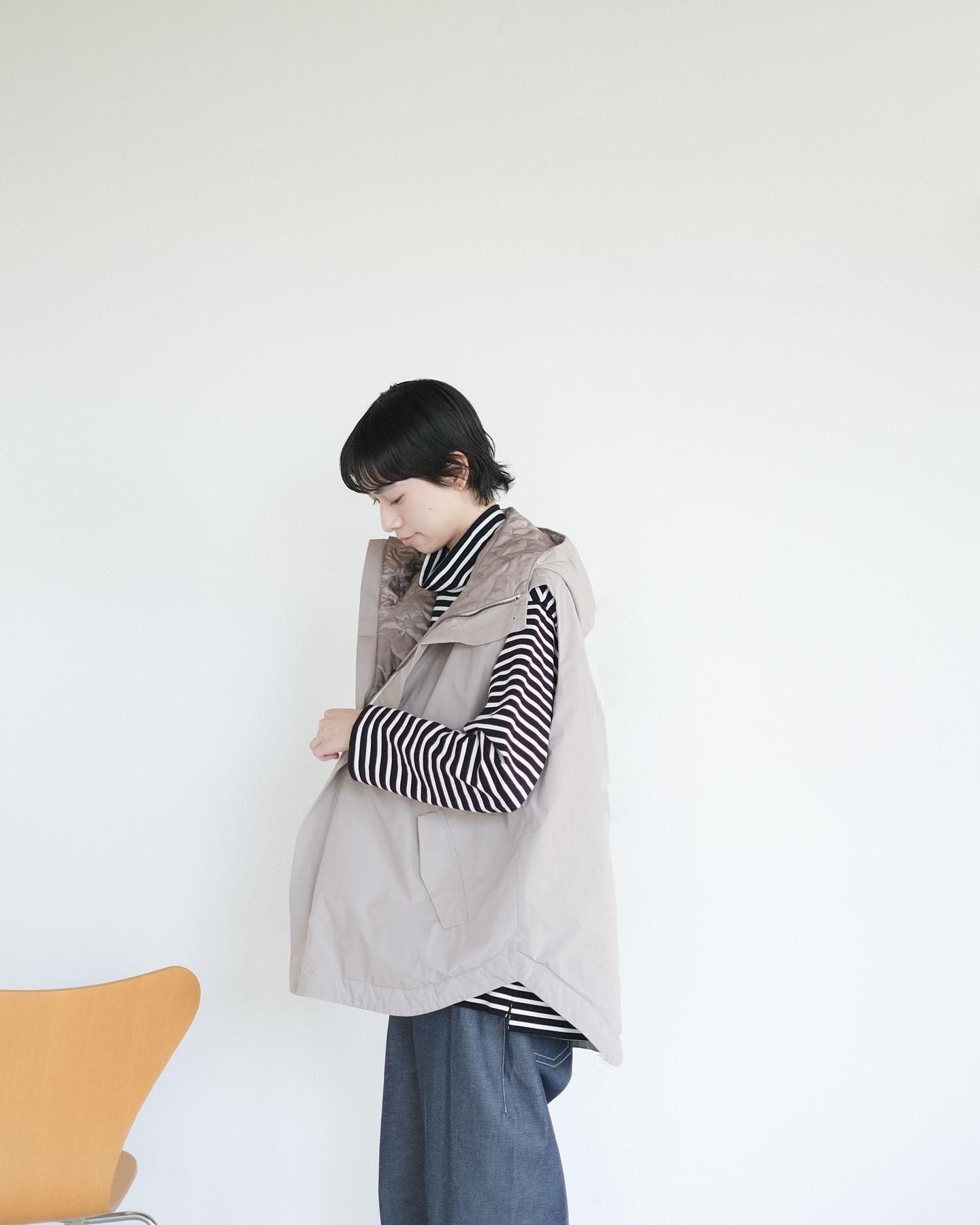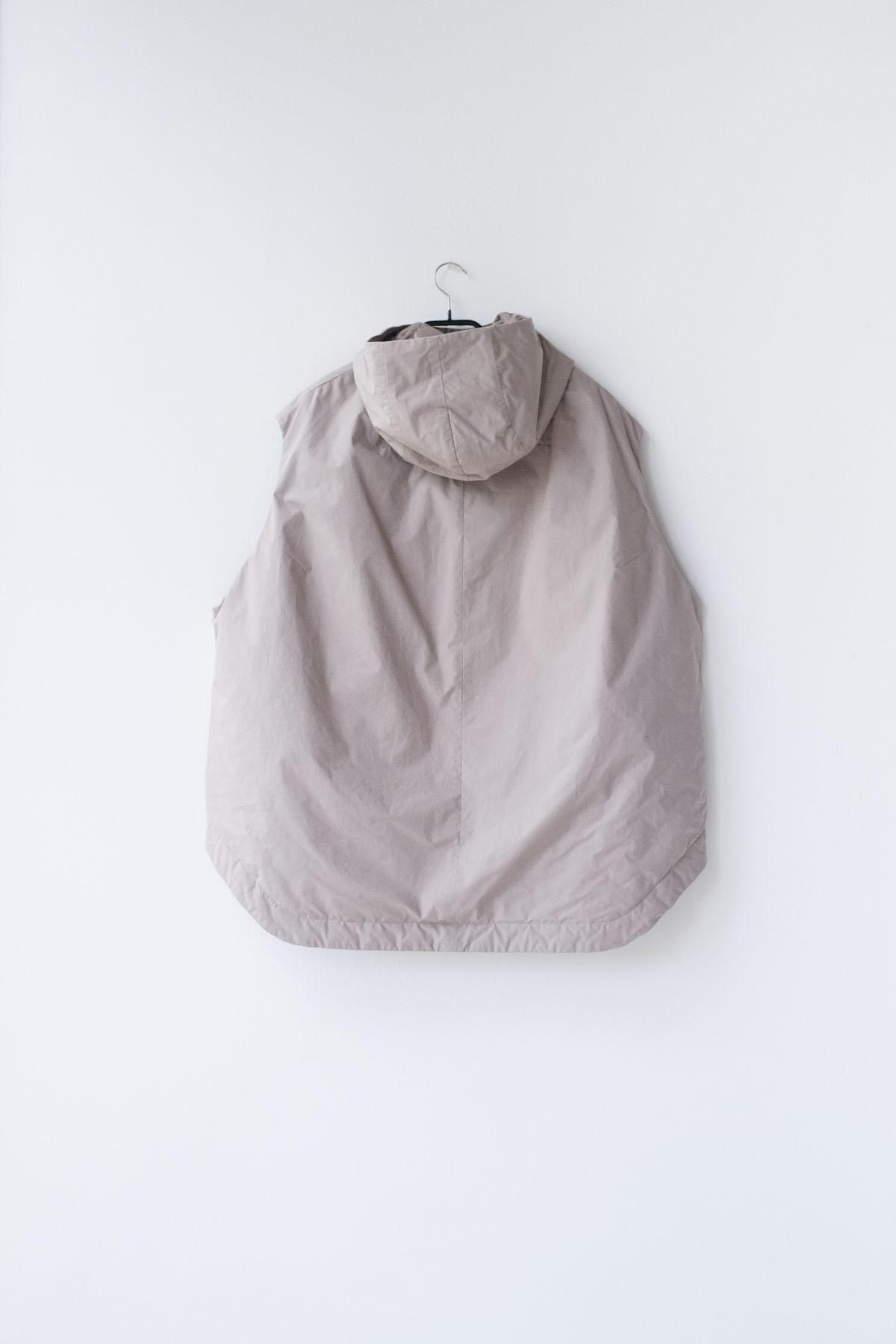 【商品名】コットン・ ポリコア タイプライター・フードベスト/Light Greige[size XS]