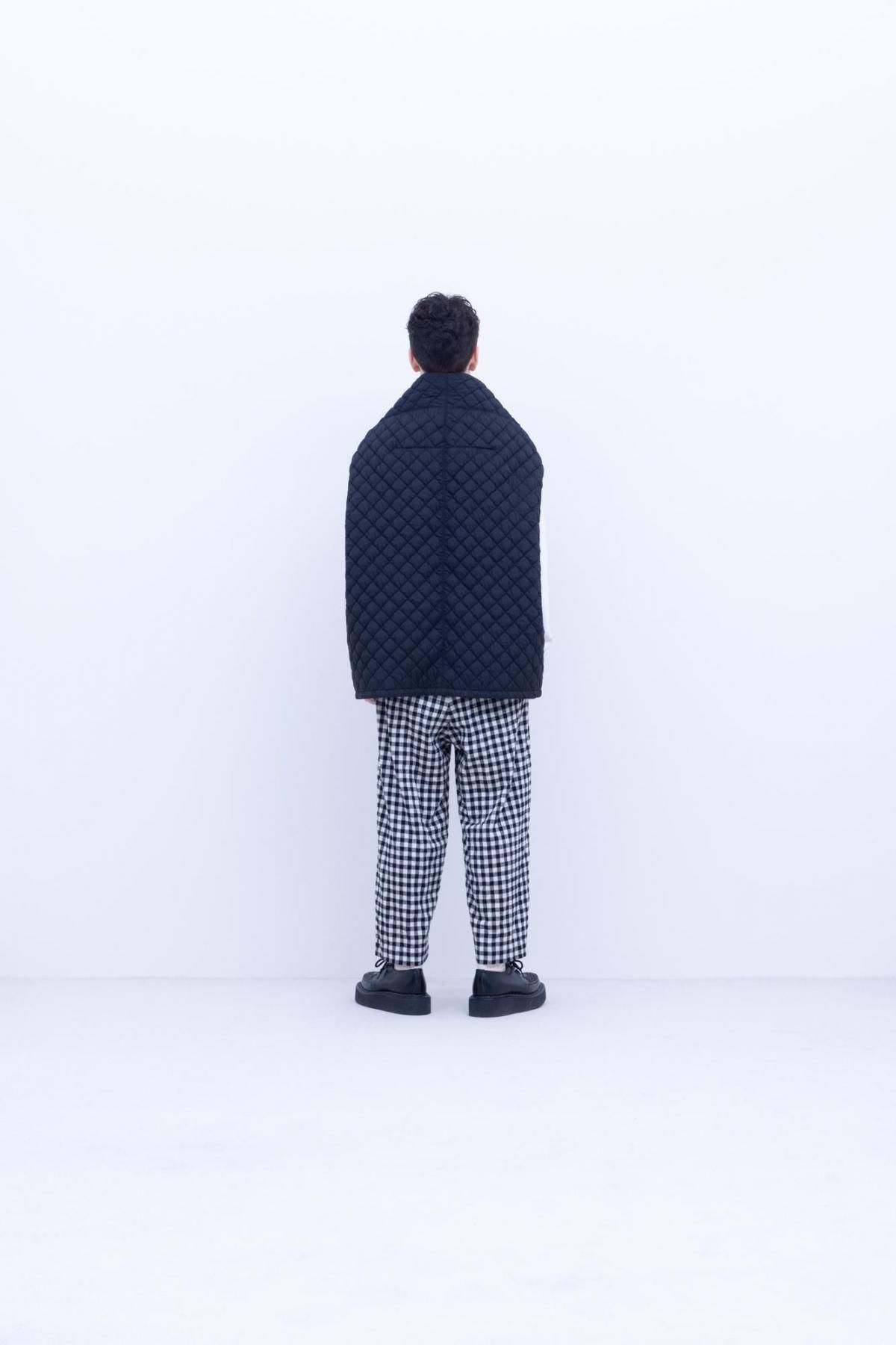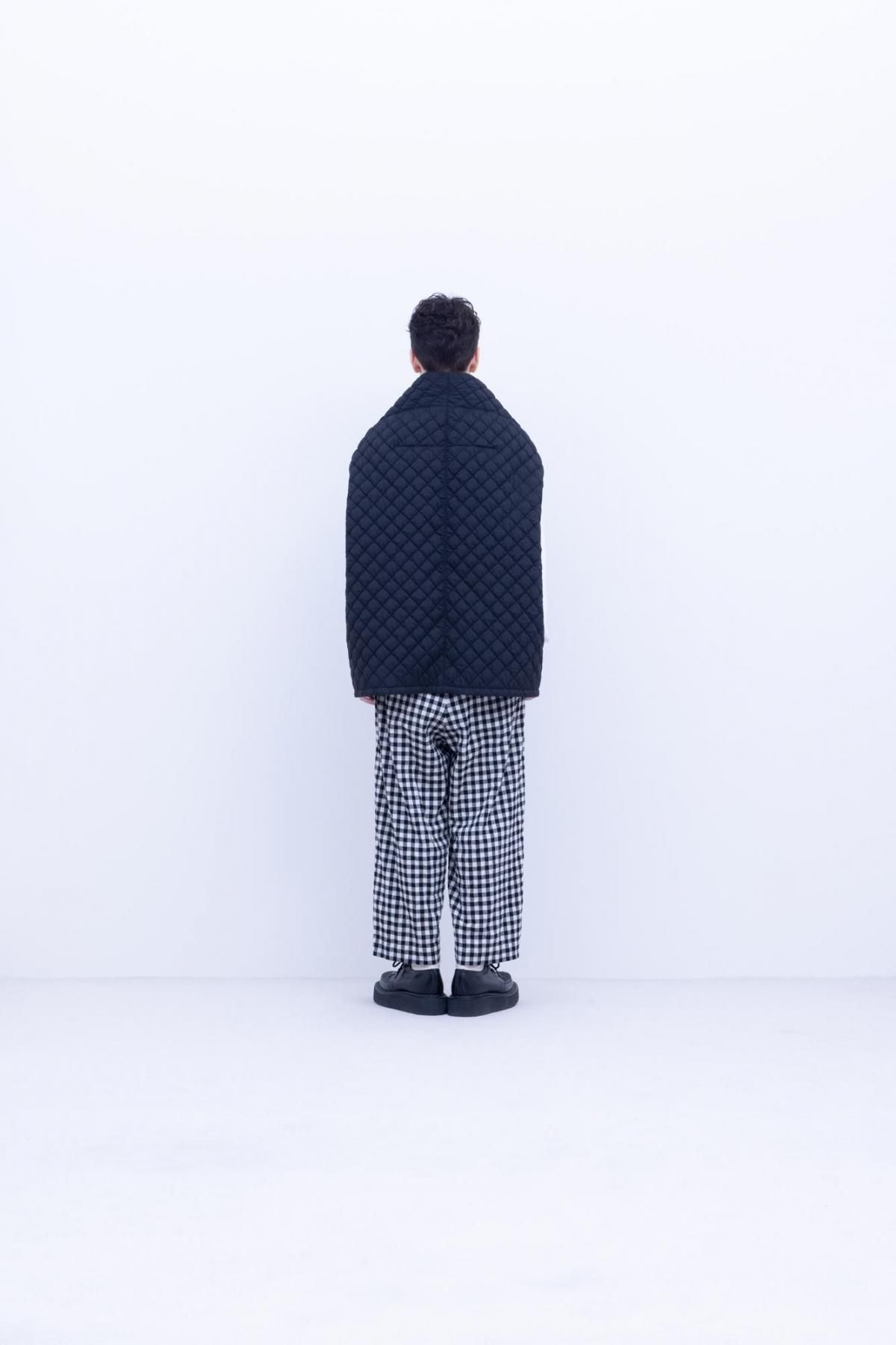 熱によりシュリンクする生地を内側に挟み込み、キルティング後に熱入れ加工を施し大きく膨らみを出しています。