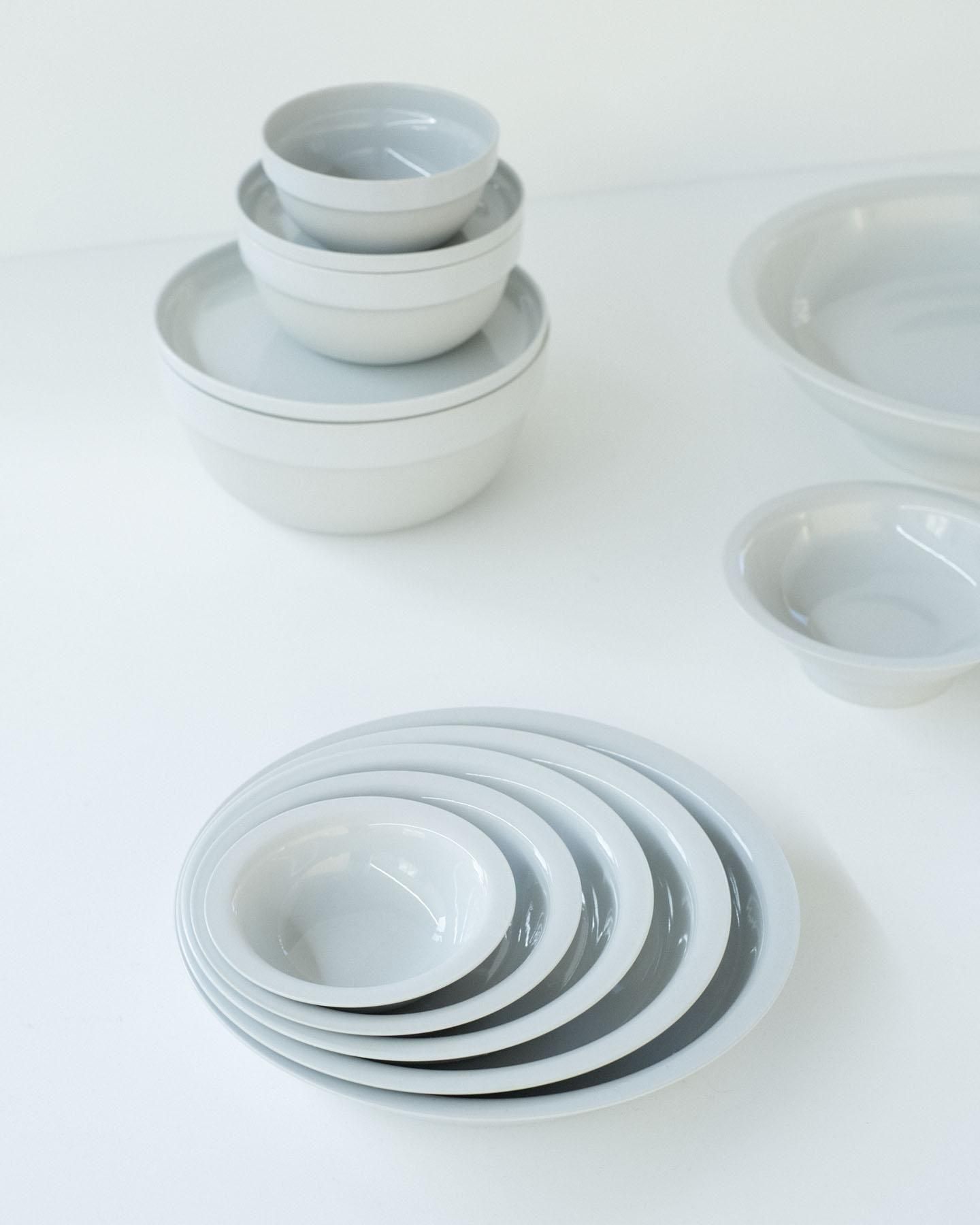 シンプルさと柔らかさを兼ね備えた「Clay」は、デンマーク人デザイナーのセシリエ・マンツの3年間にわたる緻密な検証と何百枚ものスケッチ、数えきれない試作を経て誕生しました。スタッキング可能なプレートやボウルなど、フラット、ディープ、ロー、トールの4つの要素で構成されています。