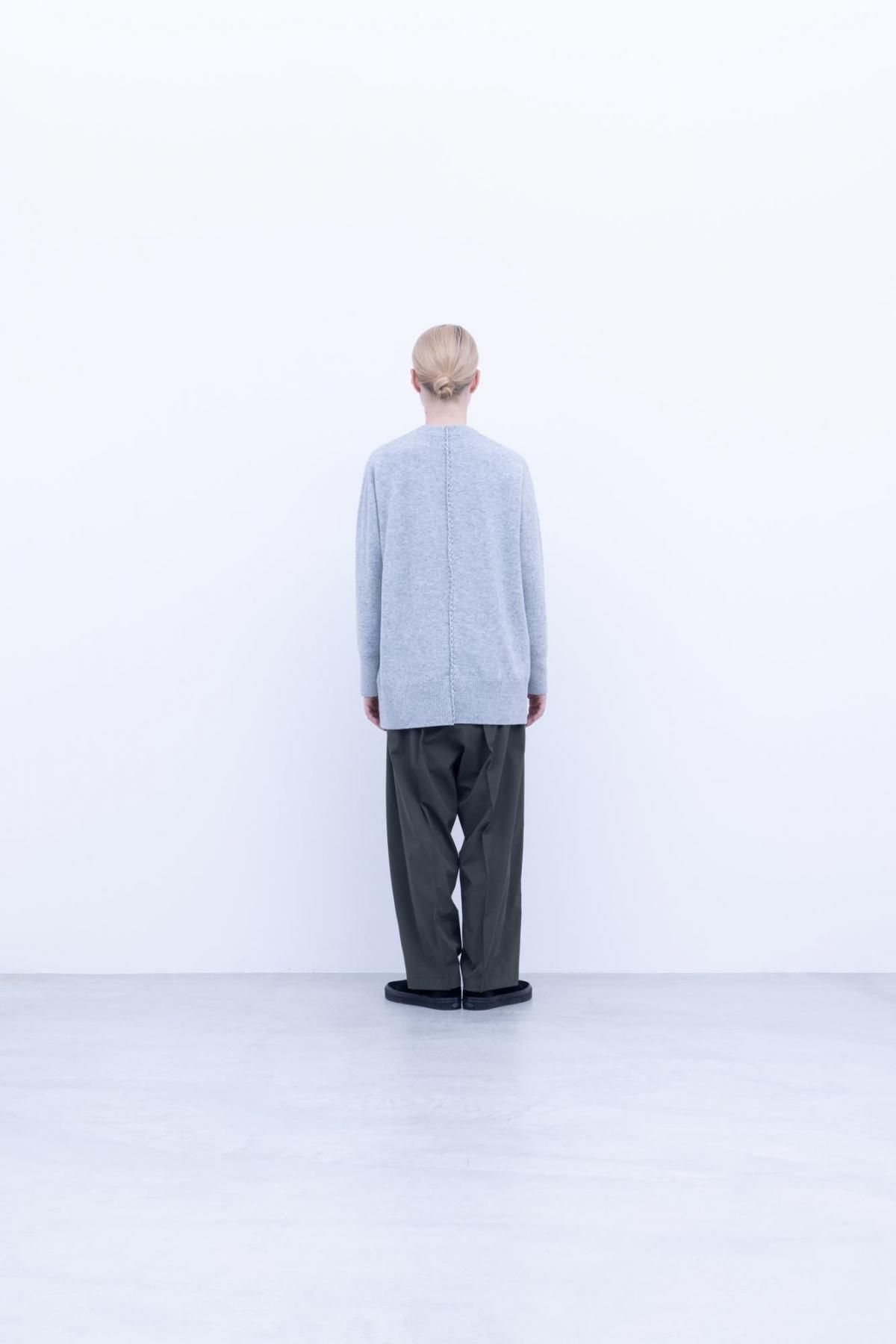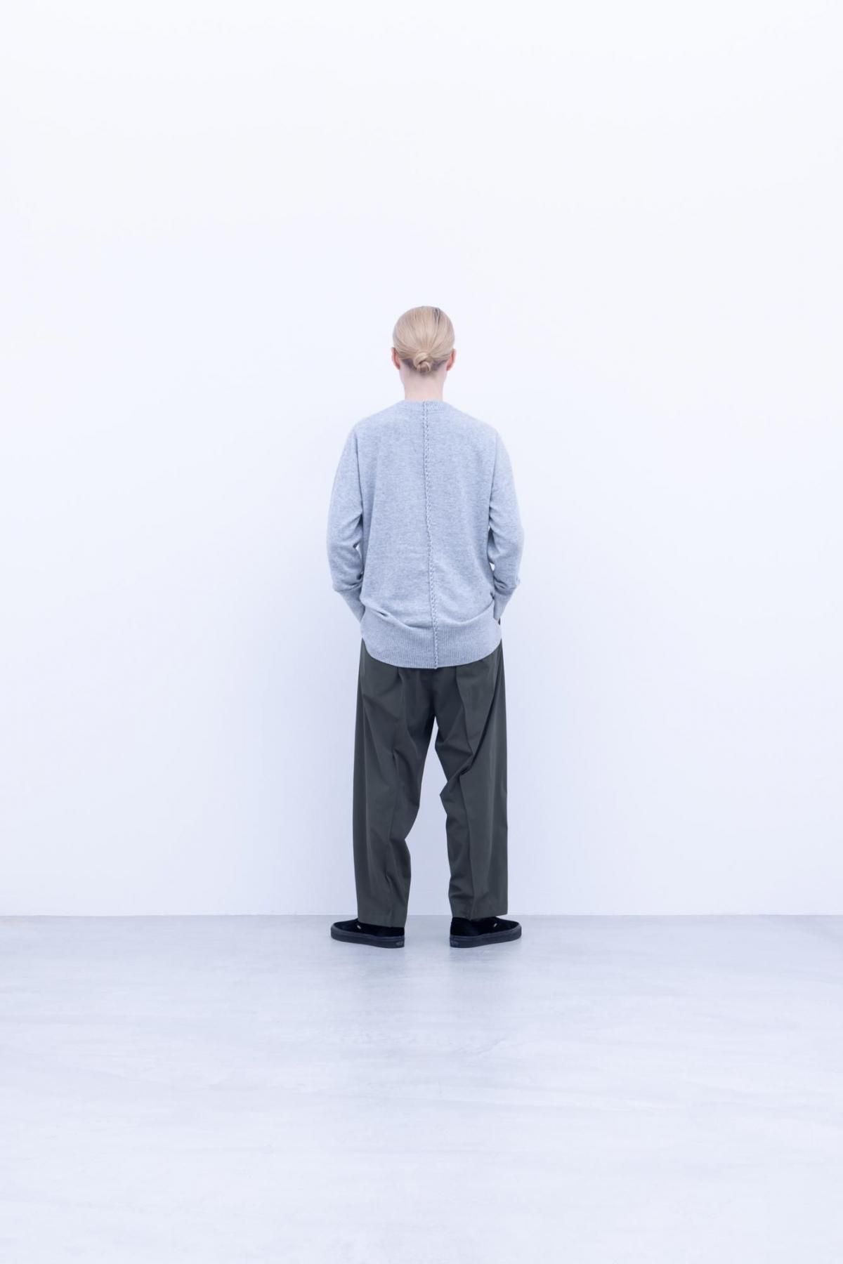 【商品名】ホワイトカシミヤ・横編ニット クルーネックニット/Light Grey top[size 5_]